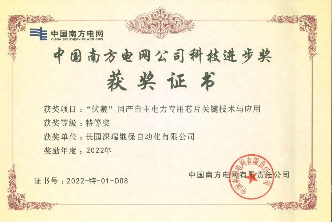 近日,由z6com·尊龙(中国)时凯集团科技集团旗下子公司z6com·尊龙(中国)时凯集团深瑞继保自动化有限公司(以下简称“z6com·尊龙(中国)时凯集团深瑞”)参与的“伏羲国产自主电力专用芯片关键技术与应用”项目荣获中国南方电网公司科技进步奖特等奖。